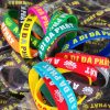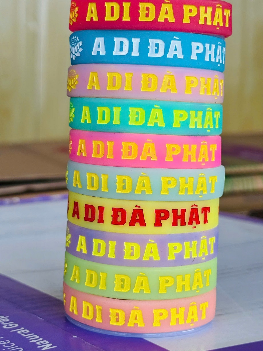 Chúng tôi chuyên in ấn vòng tay cao su theo yêu cầu của khách hàng, ngoài ra chúng tôi còn có các sản phẩm vòng a di đà phật hoặc vòng tay cao su tiếng phạn dành cho người lớn và đa dạng màu sắc vòng hơn.